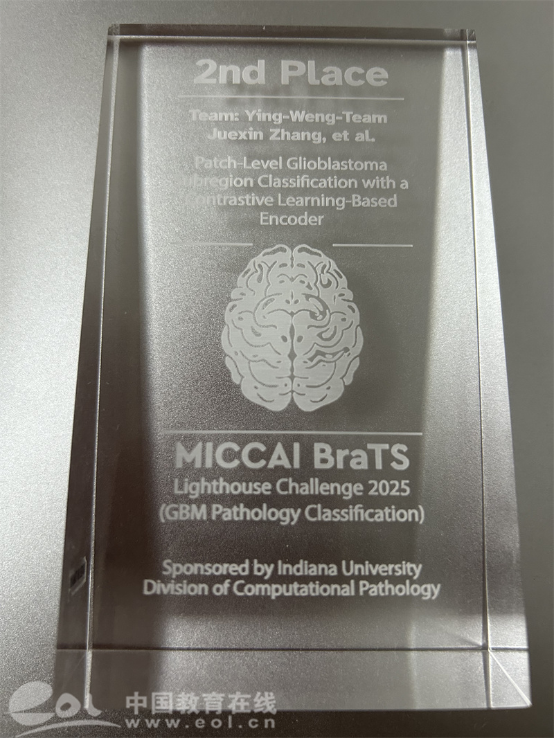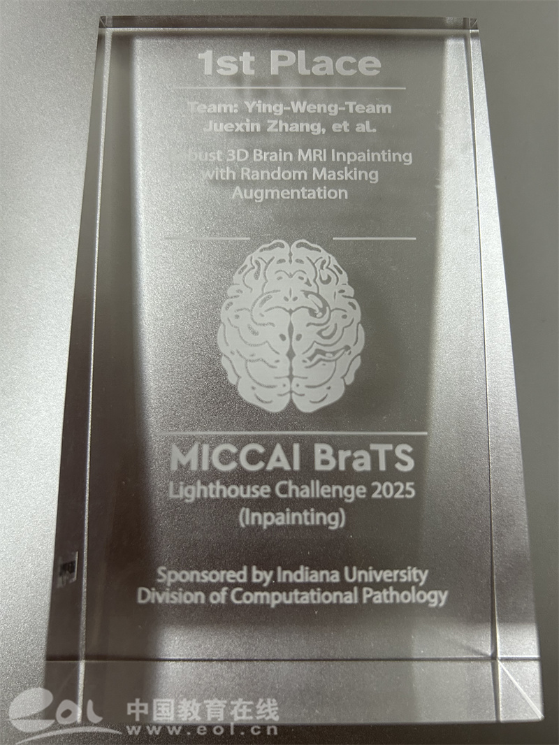 中国教育在线浙江站讯(记者 陈显婷 通讯员 蔡骏)近日,国际医学图像计算和计算机辅助干预(MICCAI)协会公布了MICCAI 2025挑战赛各项赛道的获奖名单。宁波诺丁汉大学计算机人工智能专业主任翁莹教授带领的博士生团队再度蝉联国际脑肿瘤图像修复赛全球冠军,荣膺三连冠。同时,团队在国际脑肿瘤病理图像赛道中蝉联全球第二。
