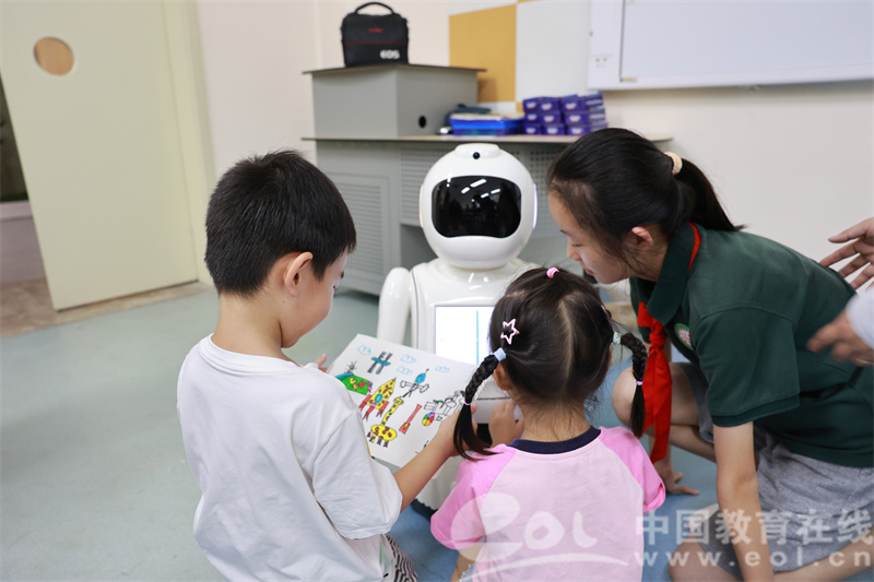 在“星荷朋友圈”里,星宝大胆挑战新闻播报,杭州市采荷第三小学的哥哥姐姐化身点评小导师,认真倾听指导,在跨龄互动中实现双向成长。