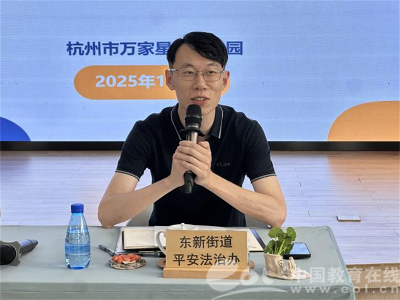 东新街道平安法治办公室主任蒋维晟就校园及周边治理工作提出多维度要求,严控食材溯源与索证索票;常态化排查设施隐患,定期开展应急演练,提升师生实操能力;动态监测学生心理状态并及时干预,排查化解矛盾纠纷,严打校园欺凌行为。
