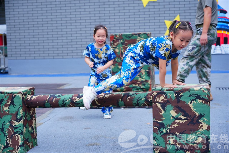 中国教育在线浙江站讯(编辑 邱彬鑫 通讯员 陈丽)当军绿色迷彩裹住坚毅的身形,当清脆童声喊出“稍息、立正”的铿锵口令,近日,一场专属于大班萌娃的“军人梦”在杭州市澎博、澎雅幼儿园暖心启幕。为期三天的“小小军人梦,勇敢向前冲”军训活动里,一群“小小兵”用汗水写坚持,用笑容展成长,更在离别时刻,以亲手制作的礼物,定格了一段又萌又暖的童年记忆。