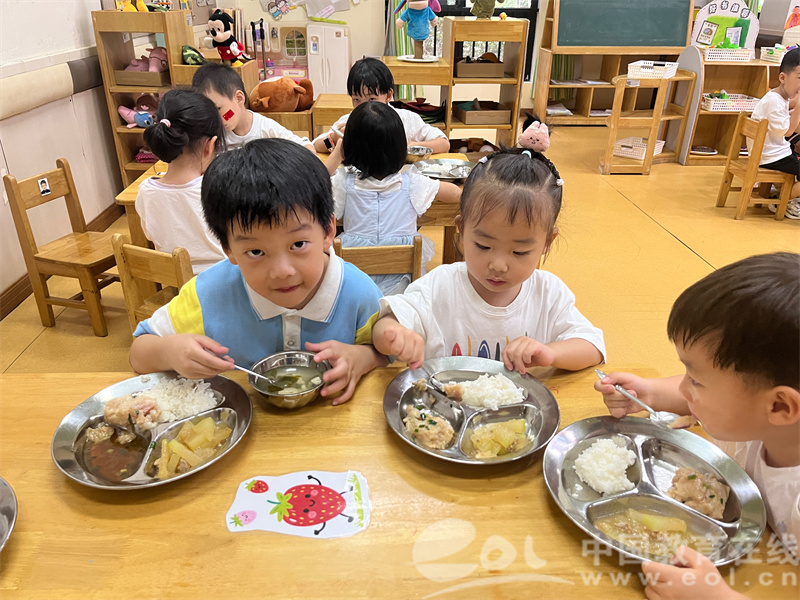 园长妈妈邀请宝贝们留园共享“叮咚暖心餐”。餐桌上,毕业生主动帮弟弟妹妹分发餐具,还分享小学食堂的趣事;老师则像从前一样,给孩子们添着他们爱吃的菜,他们也想念着幼儿园熟悉的味道,弟弟妹妹们对“小学”的好奇被一一解答,毕业生们也在照顾他人的过程中,更深刻地体会到成长的意义。