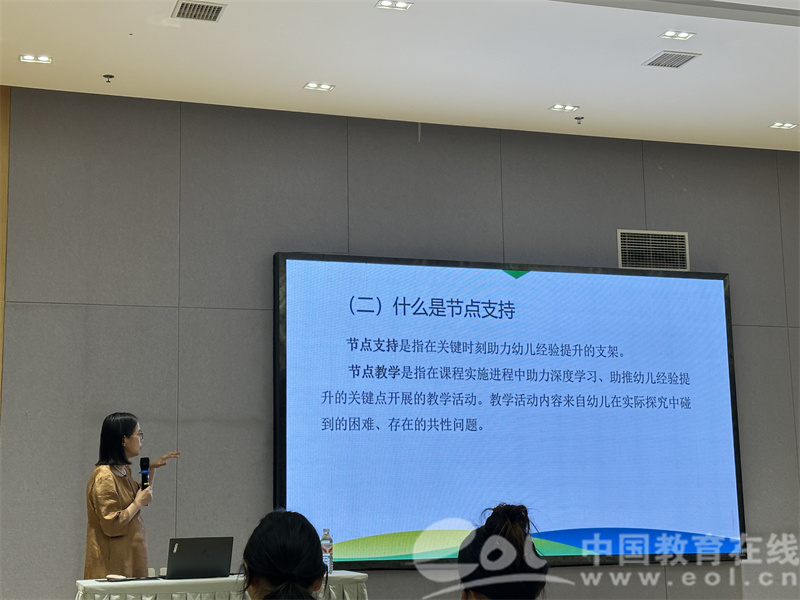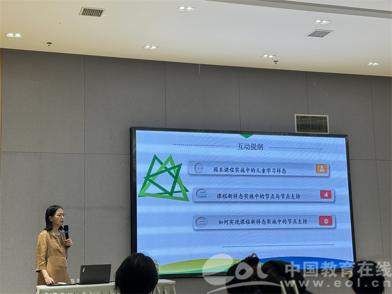 在明晰了儿童学习的三种样态后,黄教授进一步深入阐述了课程实施中的“节点支持”这一核心概念。她指出,教师需精准把握主题内容间的内在逻辑关系,以此识别课程实施中的关键节点。节点教学正是围绕幼儿探究中的真问题展开,旨在推动深度学习。
