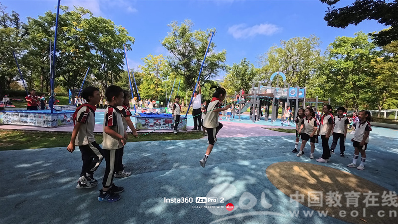 二年级的小朋友们则兴致勃勃地走进了杭州亚运公园。色彩鲜艳的游戏区瞬间吸引了所有人的目光,孩子们分组体验螺旋滑梯、攀爬架、摇摇马等设施。滑梯上的欢呼、攀爬时的互助、木马上的笑语,处处洋溢着童真与活力。午餐时分,大家分享零食,你递饼干我送水果,温馨有爱。返程时,不少孩子揉着酸软的手臂却意犹未尽,纷纷喊道:“下次还要来!”