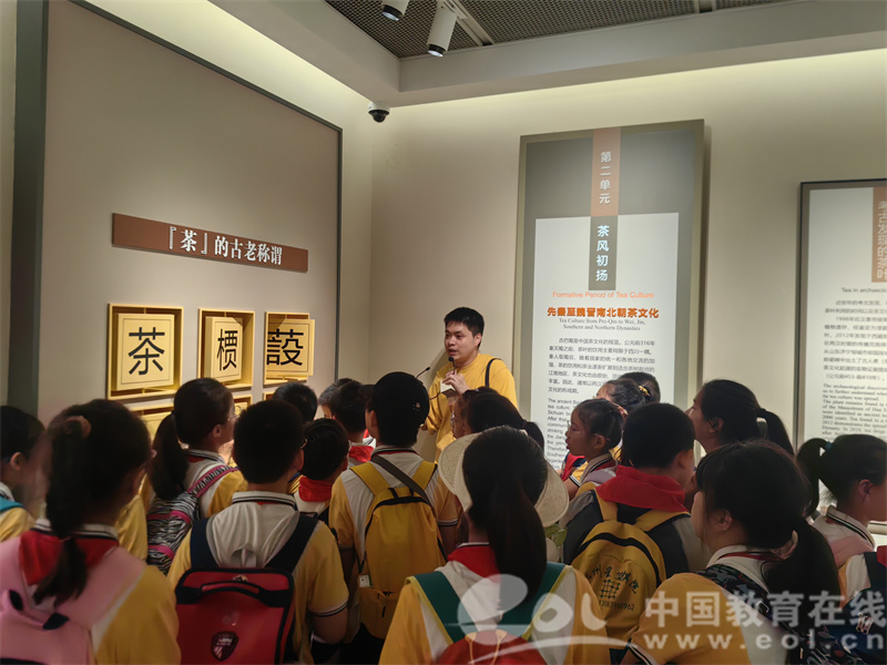 五年级师生走进中国茶叶博物馆,开启了一场茶香四溢的秋游。步入博物馆,同学们仿佛穿越了时空长廊,通过丰富的图文和实物,系统了解了茶叶的起源、种类和制作工艺,感受中华茶文化的博大精深。随后,大家兴致勃勃地走访了周边的连绵茶山,亲手触摸碧绿的茶树,呼吸着清新的空气,亲眼见证了“西湖龙井”的生长环境。这次秋游,不仅是一次快乐的出行,更是一堂生动的自然与文化实践课,让同学们在行走的课堂中,收获了知识,也更加热爱我们脚下的这片土地。