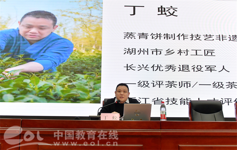 据了解,丁蛟现是国家一级评茶师、茶艺师,浙江省技能人才评价高级考评员,2023年荣获“湖州乡村工匠”“长兴优秀退役军人”称号,其主持的紫笋茶“蒸青饼制作技艺”同年入选长兴县第七批非物质文化遗产代表性项目名录,并持有发明专利1项、实用新型专利2项,成为传统茶艺保护与创新领域的标杆人物。