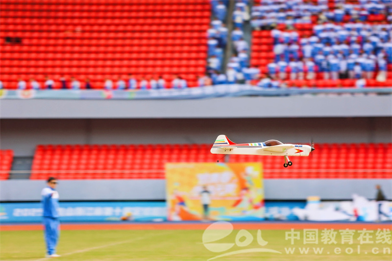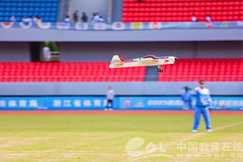 中国教育在线浙江站讯 (记者 占尘雪 通讯员 夏珍珍)当翼展约1.5米的线操纵模型飞机直冲20米高,看台上的师生都惊呆了,发出阵阵惊呼。