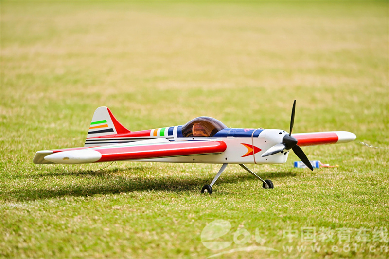 表演结束后,朱睿向记者介绍起了自己的“伙伴”,“这是一架60级线操纵模型飞机,他的内部几乎是空的,只有一个位于重心位置的三角摇臂和连接升降舵的拉杆。所有的飞行姿态变化,都靠对这两根钢丝的操纵,而这正是这个项目的主要难点。”
