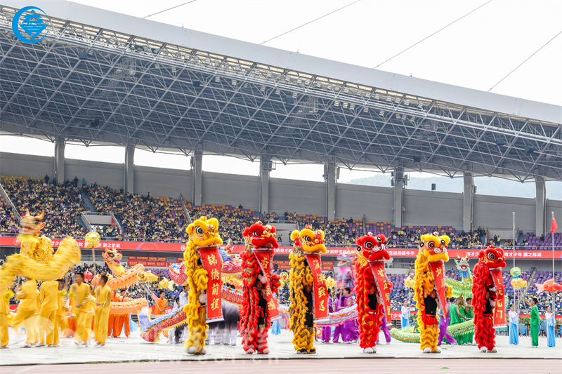 在随后的入场式表演中,临安片区横畈小学的“山娃武术队”引人关注。当三年级学生杨康慧一个空翻跃上同伴肩头,作为“塔尖”完成金鸡独立时,全场掌声雷动。