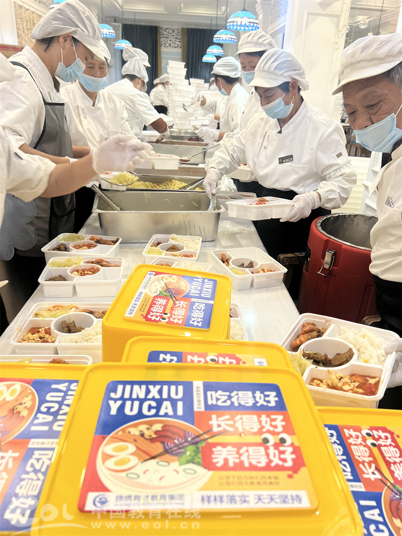 今年,育才还特别定制了餐盒,封面上印着“样样落实,天天坚持”的校训和“吃得好,长得好,养得好”几个大字。现场有家长感慨,只有育才才有“接万人大单”的底气。