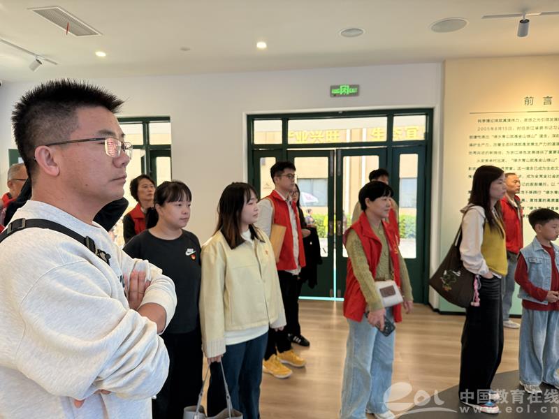 接着,走进余村党建文化广场。教师们化身“学生”,认真聆听讲解员介绍余村在践行“两山”理念过程中的具体做法和取得的成效。一张张照片,一组组数字告诉教师们,余村的今天并不是一蹴而就的,是当地干部群众敢于“壮士断腕”,久久为功奋斗出来的,而这种几十年如一日的“实干”精神也给予教育深深的启发,“改革没有捷径可走,唯有以‘钉钉子’的韧劲深耕土壤,知行合一方能将理念转化为现实。”