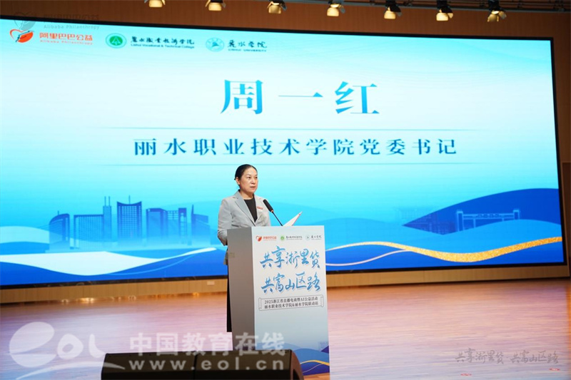 启动仪式上,丽水职业技术学院党委书记周一红代表承办方致欢迎辞。她系统回顾了学校在农村电商与产教融合方面的实践成果,重点介绍了“中高企一体化”育人机制在培养数字人才方面的创新探索。