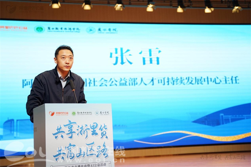 阿里巴巴集团社会公益部人才可持续发展中心主任张雷分享了企业在乡村振兴领域的实践经验。他详细阐述了阿里公益“数字+产业”的共富模式,强调将通过系统化的实训体系,帮助学员掌握AI技术与直播电商核心技能,助力丽水优质农产品拓宽数字化销售渠道,实现“技术进村、货品出山”的良性循环。