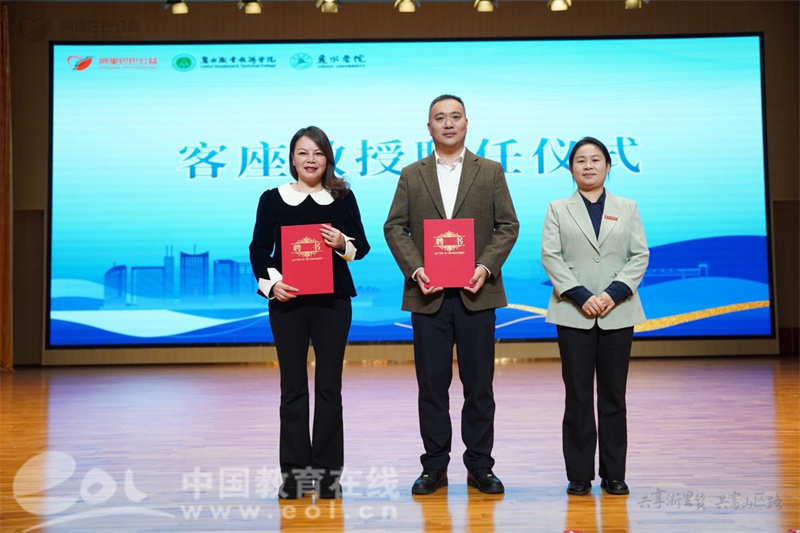 活动特别设置了文化展示环节,畲族朗诵节目《我在一颗石榴里看见我的祖国》生动演绎了民族文化与数字传播的创意融合。在客座教授聘任仪式上,阿里巴巴驻景宁县乡村特派员梁玉、丽水市农创客协会秘书长林丽萍受聘为丽水职业技术学院产业导师,为数字人才培养注入行业前沿力量。