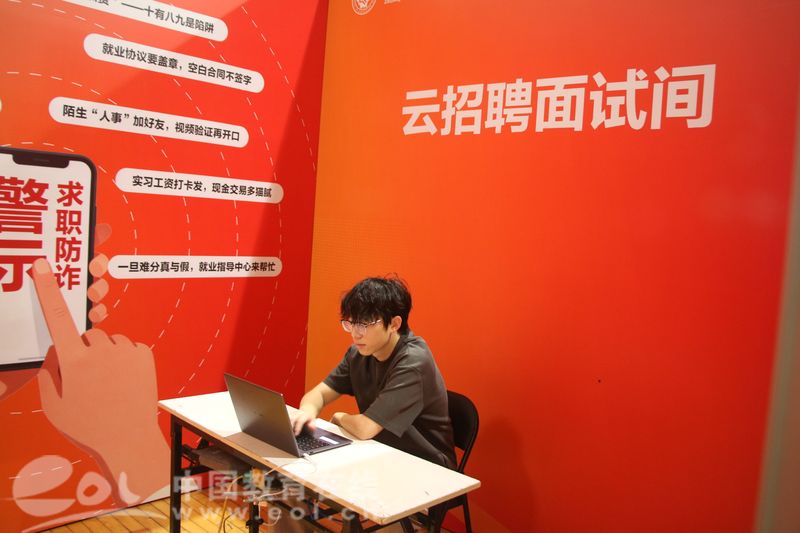 数字化服务的深度应用成为本次招聘会的一大亮点。在“简历优化实验室”区域,同学们选择简历模板,填写个人信息,便能在AI的智能诊断下生成一份亮点突出的简历,精准捕捉自身核心优势。“AI简历诊断很好地帮助我总结了自身的优势和特长,使我的简历变得与众不同!”刚完成简历制作的市场营销专业毕业生小周满意地说道。云招聘面试间也为在场学生提供了实战演练的机会。部分企业开通线上面试通道,学生在面试间内即可完成简历投递和视频面试,大大节约了学生的面试成本。