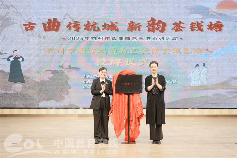中国教育在线浙江站讯 (记者 陈显婷 通讯员 陈雨沁)金秋十月,曲韵悠扬满校园。10月28日“地方戏曲进校园,文化传承绽新颜——杭州市地方戏曲曲艺教学实践基地揭牌仪式”在杭州市胜蓝实验小学举办。