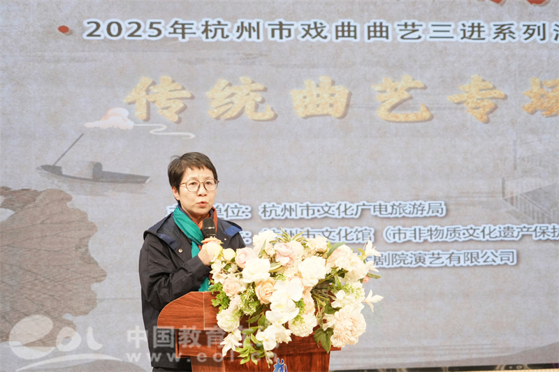 活动伊始,陈群云致欢迎词,并代表全校师生向戏曲曲艺大师致敬。她表示,杭州戏曲曲艺是江南文化明珠,此次授牌搭建非遗传承桥梁,既让学生感受传统魅力,更培育文化担当,同时呼吁师生以教学实践基地为依托,推动非遗与教育融合。