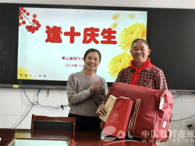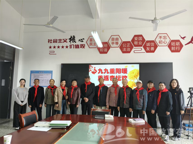 中国教育在线浙江站讯(编辑 邱彬鑫 通讯员 胡雪君)金秋送爽,丹桂飘香。10月28日,常山县同弓乡中心小学党支部联合工会以“九九重阳暖 重返杏坛欢”为主题,邀请全体退休教师“回娘家”共度重阳佳节,其中一位89岁老教师的身影格外亮眼,用活力风采为节日增添别样温情。