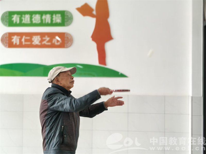最后,老教师们热情投入到趣味活动中。在对墙打乒乓球项目里,89岁的老教师手握球拍,眼神专注,每一次挥拍、接球都干脆利落,身手丝毫不显老态,尽显当年风采。