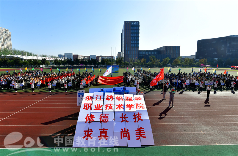中国教育在线浙江站讯 (记者 陈显婷 通讯员 王国海)10月29日上午,浙江纺织服装职业技术学院第二十一届运动会在学校运动场开幕。校领导班子成员、师生代表以及850余名体测运动会参与者齐聚一堂,共同见证这一充满活力与激情的体育盛事。