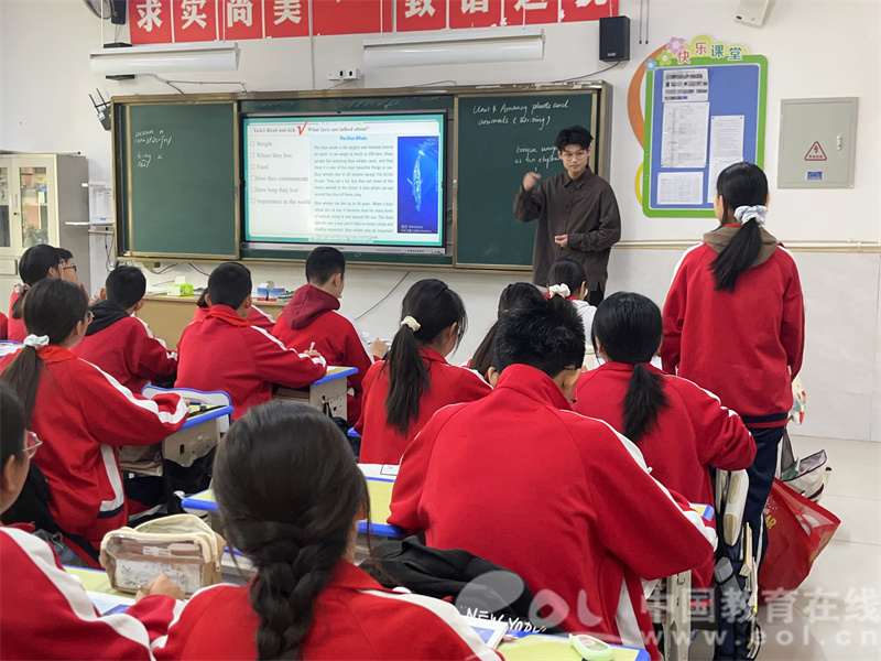 杨峰老师的《Unit 4 Amazing Plants and Animals》(Section B 3a-3c)示范课,以“蓝鲸”视频导入情境,围绕“用第一人称介绍蓝鲸、呼吁人与自然共生”的目标,设计“略读梳理框架—精读挖掘亮点—仿写模拟视角”三层任务,并搭建分层学习支架,实现“以读促写、教评一致”,课堂互动踊跃。