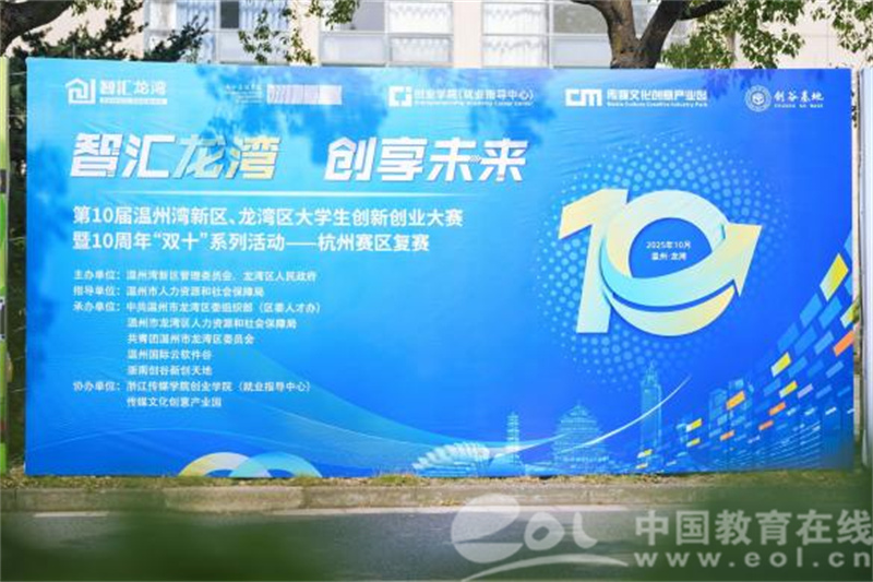 中国教育在线浙江站讯 (记者 陈显婷 通讯员 杜宛桐)10月28日,“智汇龙湾·创享未来”第10届温州湾新区、龙湾区大学生创新创业大赛复赛杭州赛区活动在浙江传媒学院顺利举行,旨在为大学生搭建了一个展示才华、对接资源、实现梦想的优质平台,持续激发区域创新创业活力。17支经过层层筛选的优质大学生创业团队同台竞技,以创新思维碰撞智慧火花、用实干担当书写青春答卷。