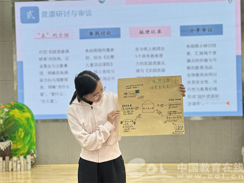 中国教育在线浙江站讯(编辑 邱彬鑫)为深化教师对园外教育资源的认知,明确其在课程实施中的价值与开发要点,10月28日至29日,临江幼儿园教科室主任朱丽丹组织全体教师开展了以“分组行走:园外资源实地考察调研”为主题的第三次校本研修活动。活动通过团队游戏、分组研讨与实地考察等形式,着力提升教师对园外教育资源的发现力与课程化利用能力。