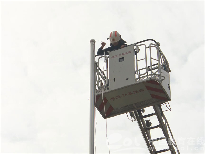师生拨通了消防救援站的电话。没想到,仅仅15分钟后,消防车的警笛声就由远及近,3名消防员背着装备冲下车,听说孩子们已经尝试了很久,消防员们先蹲下来,耐心听孩子们复述“护旗过程”。