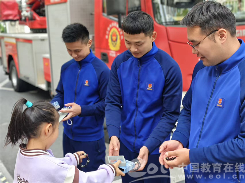 消防员们临走前,孩子们涌到车边,踮着脚送上一句句“谢谢消防员叔叔”。孩子们还送上了亲手制作的“无患子手串”,寓意消防员叔叔在今后执行任务的时候都能无忧无患,平平安安。