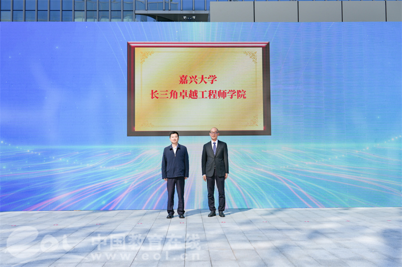中国教育在线浙江站讯 (记者 陈显婷 通讯员 周清 叶宝林)10月29日上午,在浙江长三角高层次人才创新园举行的“星耀南湖·人才港”生态推介会上,嘉兴大学党委书记沈希,嘉兴市政府党组成员、经开区党工委书记、管委会主任章澜共同为嘉兴大学长三角卓越工程师学院揭牌。