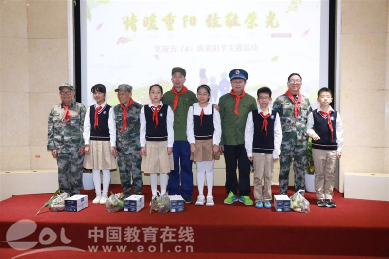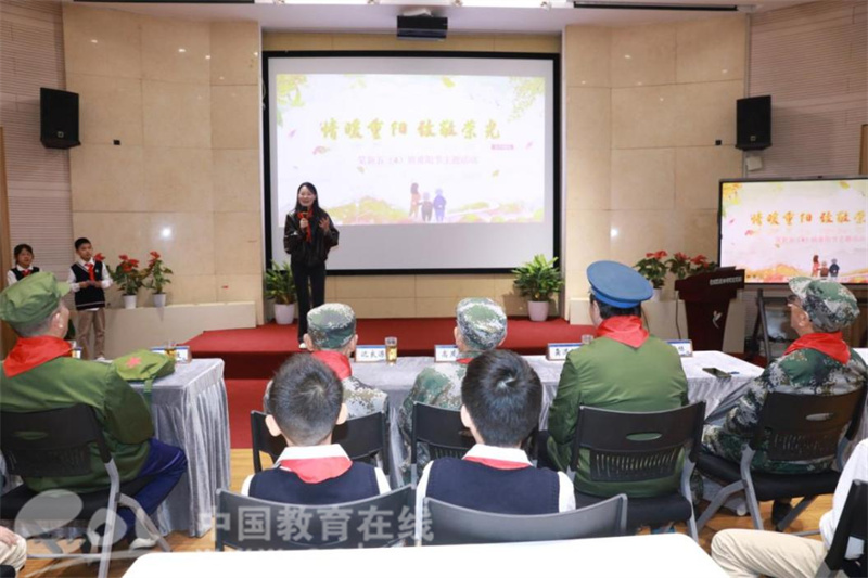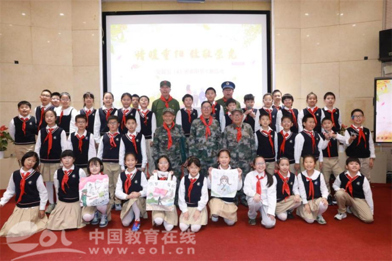 中国教育在线浙江站讯 (编辑 陈显婷 通讯员 周歆楠)金秋时节,丹桂飘香。为弘扬中华民族尊老敬老的传统美德,激发学生的爱国情怀与社会责任感,杭州濮家小学教育集团笕新校区五年级四班近日在学校报告厅举办了“情暖重阳,致敬荣光”主题班会活动。活动特别邀请了五位曾为国防事业奉献青春的退伍老兵,与师生共同度过了一个温馨而富有教育意义的下午。