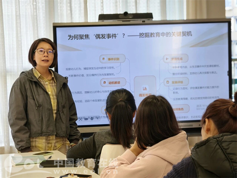 中国教育在线浙江站讯 (作者 吴秋赟 汪伟玉)在幼儿教育的日常场景中,偶发事件如同散落的“教育珍珠”,若能精准识别、科学转化,便能成为支持幼儿经验生长的重要契机。但要抓住这一契机,离不开教师“深度观察、精准解读”的核心能力——正是基于这一需求,为此,德胜东村幼儿园开启了一场“对话偶发事件・支持幼儿经验生长”的园本研修活动。