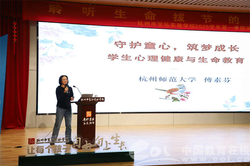 中国教育在线浙江站讯(通讯员 柯诗琪 洪蕊)10月29日晚,一场以“聆听生命拔节的声音”为主题的生命教育家长会在杭州市笕弘实验学校未来剧场B及各班教室温情展开。此次活动打破传统模式,通过专家引领与深度亲子互动,成功在家校之间、亲子之间,奏响了一曲关于“爱”与“看见”的温暖乐章。活动的余韵在会后持续蔓延,温暖了整个校园。