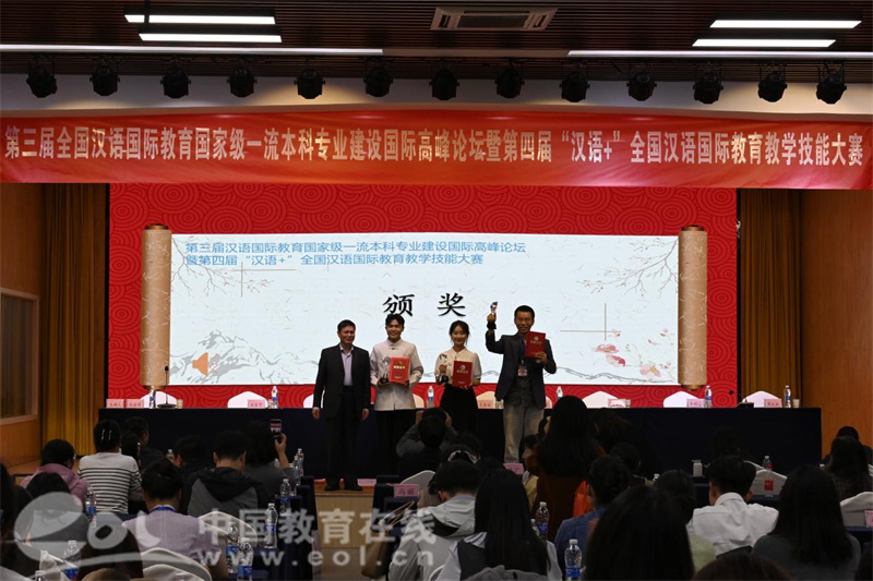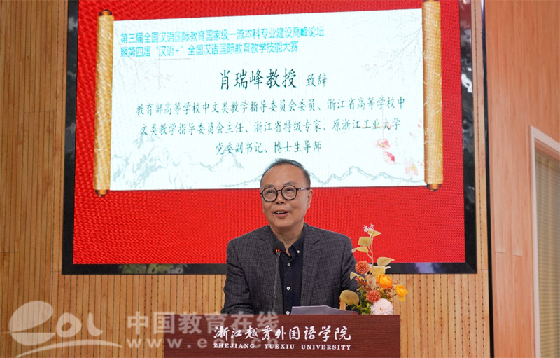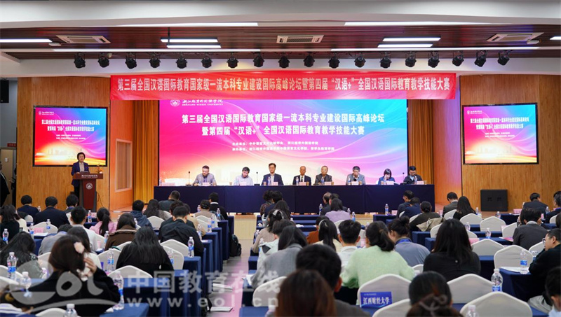 中国教育在线浙江站讯(编辑 陈显婷 通讯员 石宇轩)近日,第三届全国汉语国际教育国家级一流本科专业建设国际高峰论坛暨第四届“汉语+”全国汉语国际教育教学技能大赛在浙江越秀外国语学院成功举办。本次活动由国家一级学会中外语言文化比较学会与浙江越秀外国语学院联合主办,吸引了来自浙江大学、复旦大学、日本大阪大学、泰国华侨崇圣大学等50所高校的80余位中外专家和110名中外学生参与。