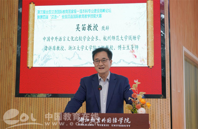 中外语言文化比较学会会长吴笛教授、浙江省中文教指委主任肖瑞峰教授、华东师范大学朱国华教授等专家学者分别致辞,高度评价活动对推动汉语国际教育专业建设的重要意义。