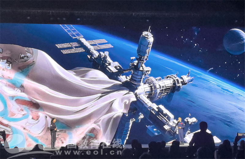 记者了解到,2025年5月,陈畅带领8人师生团队在2天内完成3件AIMV作品,全部入选第四届文明交流互鉴对话会展映。其中《飞天逐梦》航天场景的精准呈现,源于团队通宵查阅资料、迭代镜头近百次的精益求精。由她指导的跨专业师生团队作品《太公爱吃小白团》《丝路·新生》还入选平遥国际摄影大展和百度云AI音乐盛典,生动诠释了“技术赋能艺术、创新融合文化”的办学理念。