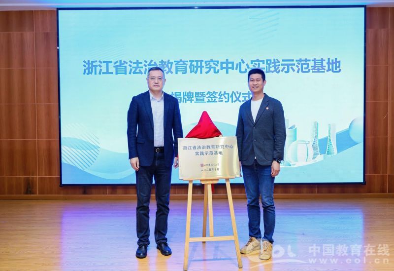更令人振奋的是,“浙江省法治教育研究中心实践示范基地”正式落户澎博小学,杭州师范大学沈钧儒法学院副院长赵元成与学校书记、校长杨灿云共同完成签约与揭牌,标志着协同合作进入新阶段。