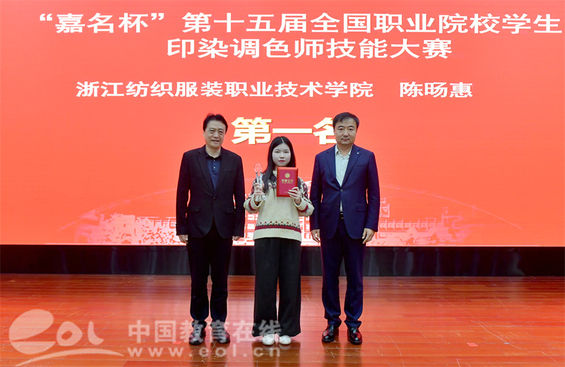 一等奖获得者、浙江纺织服装职业技术学院染整专业大三学生陈旸惠说:“这枚沉甸甸的奖牌将激励我进一步精进技艺。比赛让我更加深刻地理解工匠精神不仅是把一件事情做到极致,更是在面对压力时的从容不迫,追求完美时的永不言弃。”