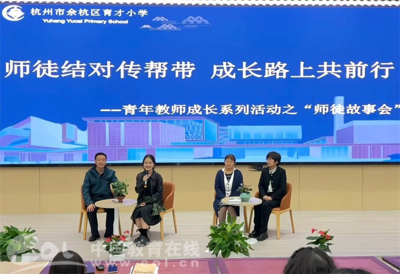 中国教育在线浙江站讯 (记者 陈显婷 通讯员 陆文琪)近日,余杭区育才小学举办“师徒结对传帮带 成长路上共前行”青年教师成长系列活动之“师徒故事会”。活动通过特级教师讲座、青年教师分享和师徒互动问答三个环节,展现了教师专业发展的多元路径和教育传承的温暖力量。