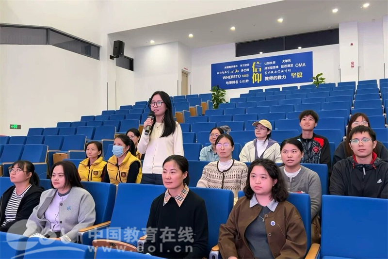活动现场,师徒互动问答将气氛推向高潮。青年教师们围绕“如何上好课”“如何关注每位学生”“如何兼顾不同学习需求”等实际问题进行提问,指导教师们结合具体案例,既传授实用方法,更强调教育需要“耐心、共情与持续观察”的职业素养。整场活动既有专业指导的深度,又充满教育传承的温度。