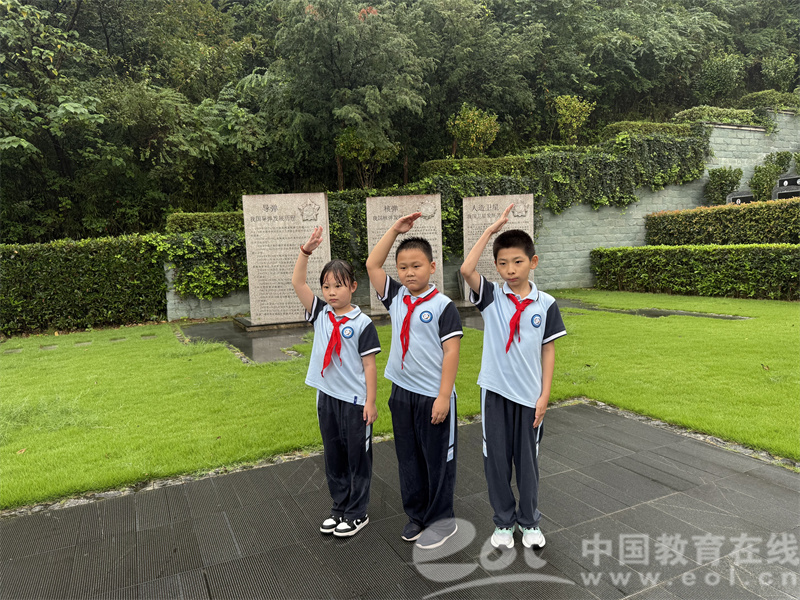 纸上的感动,终要化作脚下的敬意。学习结束后,同学们怀着崇敬之心走进杭州“两弹一星”奉献者纪念园。他们手捧自制的纸艺鲜花,轻轻放在纪念碑前,弯腰鞠躬时,小脸上满是严肃。在纪念园的誓言墙前,孩子们举起右拳庄严宣誓:“努力学习,争做优秀少先队员,传承先辈精神,做社会主义事业的合格接班人!”清脆的誓言,在纪念园里久久回荡。