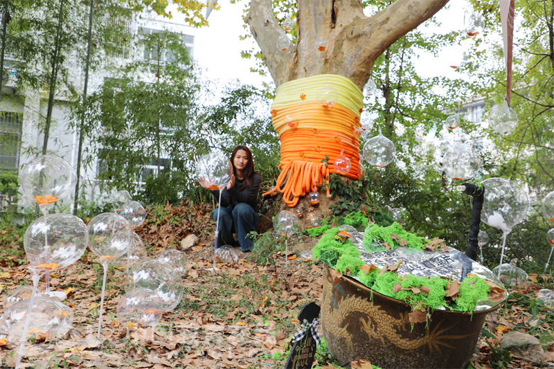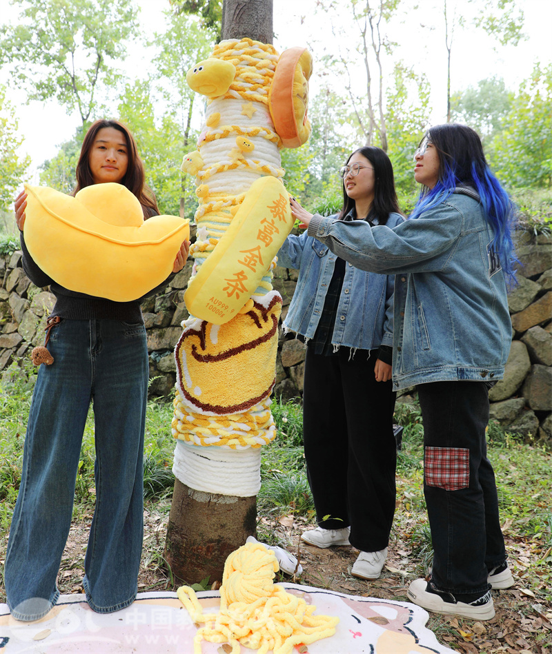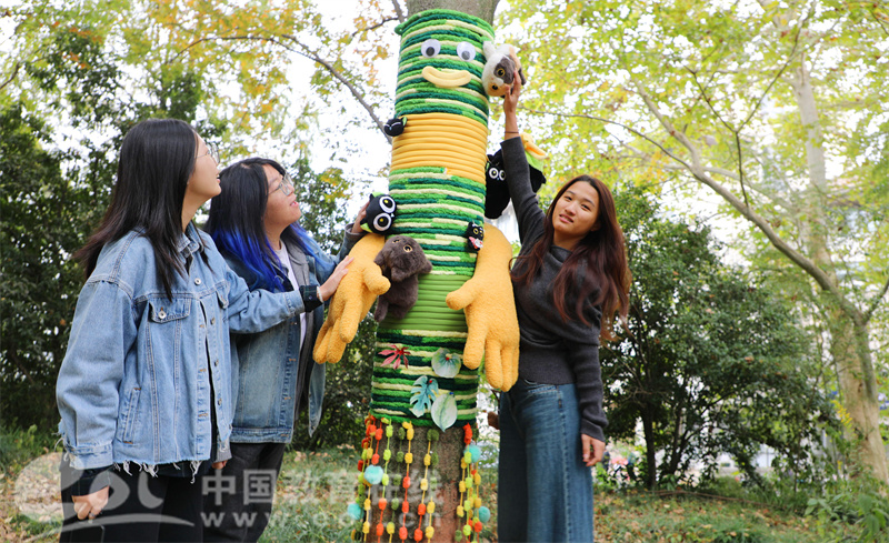 这些大树的“漂亮衣裳”,是该校环境设计专业学生设计制作的,也是他们的专业基础课《空间建构》的课程作业。
