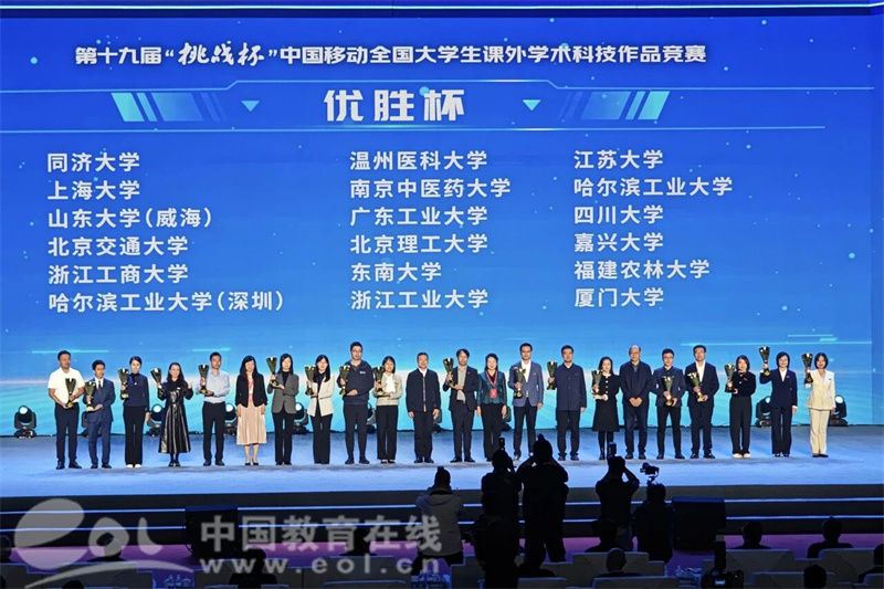 中国教育在线浙江站讯 (记者 陈显婷 通讯员 周清 傅琳)10月31日至11月3日,第十九届“挑战杯”全国大学生课外学术科技作品竞赛在南京举行。嘉兴大学学子在本届竞赛中表现优异,共斩获14项全国大奖,团体总分位列全国第33、浙江省第5,首次捧起全国“挑战杯”优胜杯,实现了学校自2019年以来连续4届成为全国“挑战杯”发起高校后的新突破。