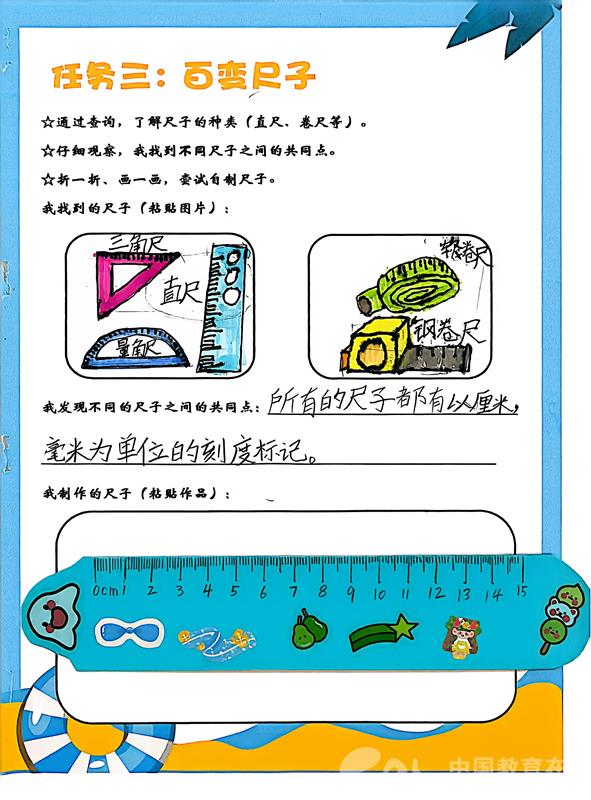 一年级聚焦“制作计算器”,孩子们先梳理10以内加减法,再参考制作视频和图片动手创作,完成后参与评比展览,既练熟了计算,又提升了动手能力。二年级的同学画刻度、标数字、装饰尺子并用自制尺子测量书本、课桌并记录,在班级与同学相互分享自己的尺子。