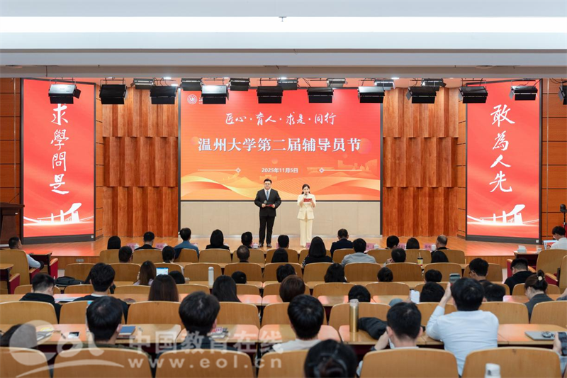 中国教育在线浙江站讯 (记者 陈显婷 通讯员 王伊如)11月5日,温州大学第二届辅导员节开幕。本届辅导员节以“匠心・育人・求是・同行”为主题,通过情景群诵、师徒结对、荣誉纪念章授予等特色活动,系统展现了学校辅导员队伍建设的创新成果,彰显了“求学问是,敢为人先”的校训精神和“立德树人”的根本使命。