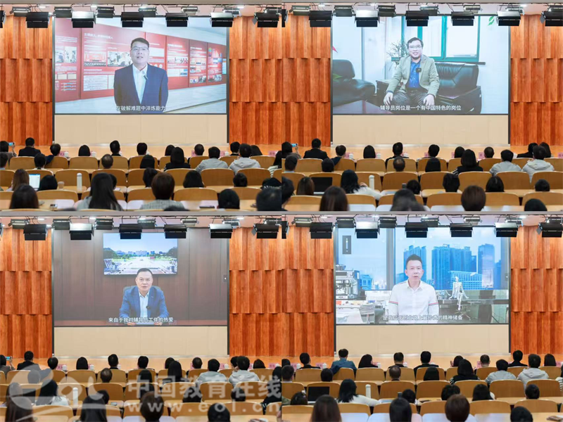 现任温州理工学院党委副书记王定福、现任台州职业技术学院院长潘玉驹,现任浙江工业职业技术学院校长倪建发、现任希伯莱皮具实业有限公司总经理周代幸通过视频分享了“辅导员之路”的成长感悟。“退休后还想成为一名辅导员”的心愿,引发了全场共鸣,展现了辅导员职业的持久魅力。