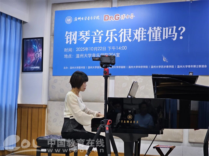 中国教育在线浙江站讯 (编辑 陈显婷)近日,温州大学第十四期“侨遍世界留在温大”论坛暨“博士荟”三周年特别活动在音乐学院成功举办。这是该品牌活动首次走进学院,以“琴键融通世界,侨心留驻温大”为主题,呈现了一场学术与艺术交融的视听盛宴。活动由温州大学侨留联(欧美同学会)联合图书馆、音乐学院、华侨学院、苏步青学院、青年博士联谊会等共同主办,充分展现了学校侨联工作与学科建设的深度融合。