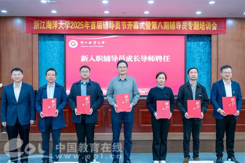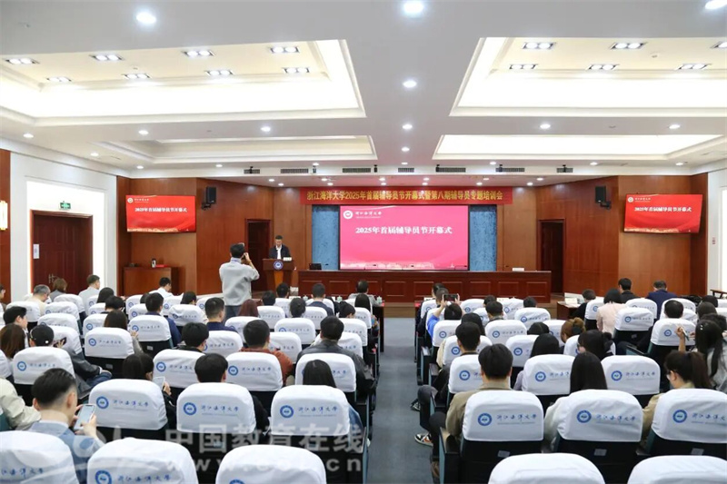 中国教育在线浙江站讯 (编辑 陈显婷)“愿大家用心、用情、用力浇灌学生成长,用实干书写教育担当。”11月5日晚,浙江海洋大学在新城校区图书馆一楼报告厅,举办2025年首届辅导员节开幕式暨第八期辅导员专题培训会。校党委副书记王剑俊出席开幕式并讲话,拉开了这场专属于辅导员的节日序幕。