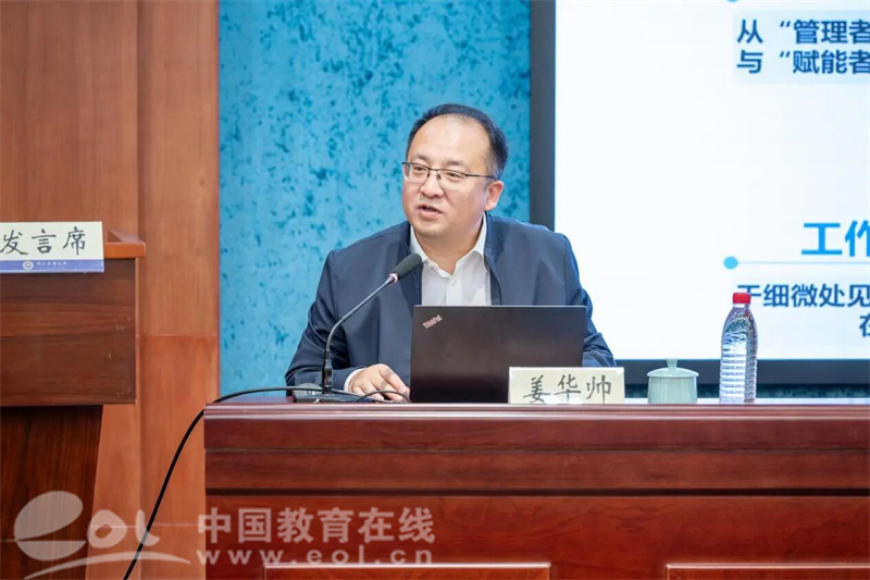 在会议第二阶段,报告厅内的学习热情持续升温。第八期辅导员专题培训会正式展开,人事处处长姜华帅博士为全体辅导员作了题为“陪伴筑基 赋能成长”的专题报告。