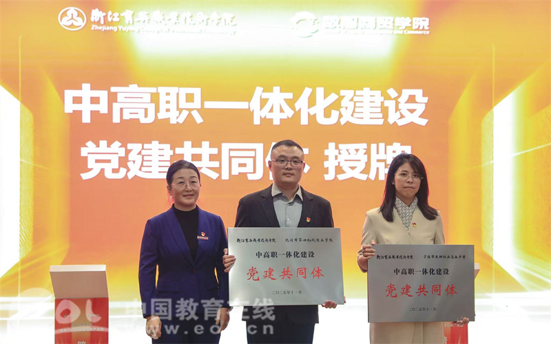 会上,跨境电商产业学院正式揭牌,并举行了支部党建共建签约和“中高职一体化建设党建共同体”授牌仪式。浙江育英职业技术学院党委联合杭州市第四机械技工学校、宁波市东坤职业高级中学,通过组织共建、资源共享、人才共育,以高质量党建引领职业教育发展。