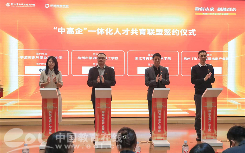 中国教育在线浙江站讯 (记者 陈显婷 通讯员 王贤军)11月5日,浙江育英职业技术学院联合杭州TikTok直播电商产业园、多所中职学校及行业企业,共同举办跨境电商产业学院暨“中高企”一体化人才共育联盟成立大会。这一重要平台的建立,标志着浙江省在深化产教融合、构建现代职教体系方面迈出坚实一步。